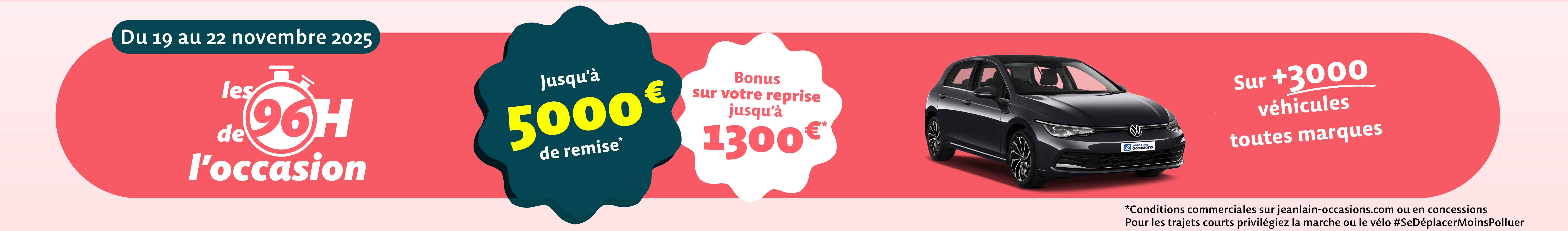 5000€ de remise valable sur les véhicules Jean Lain Occasions (Hors Low'Caz et Cargo) d’un montant supérieur à 100 001€ TTC.