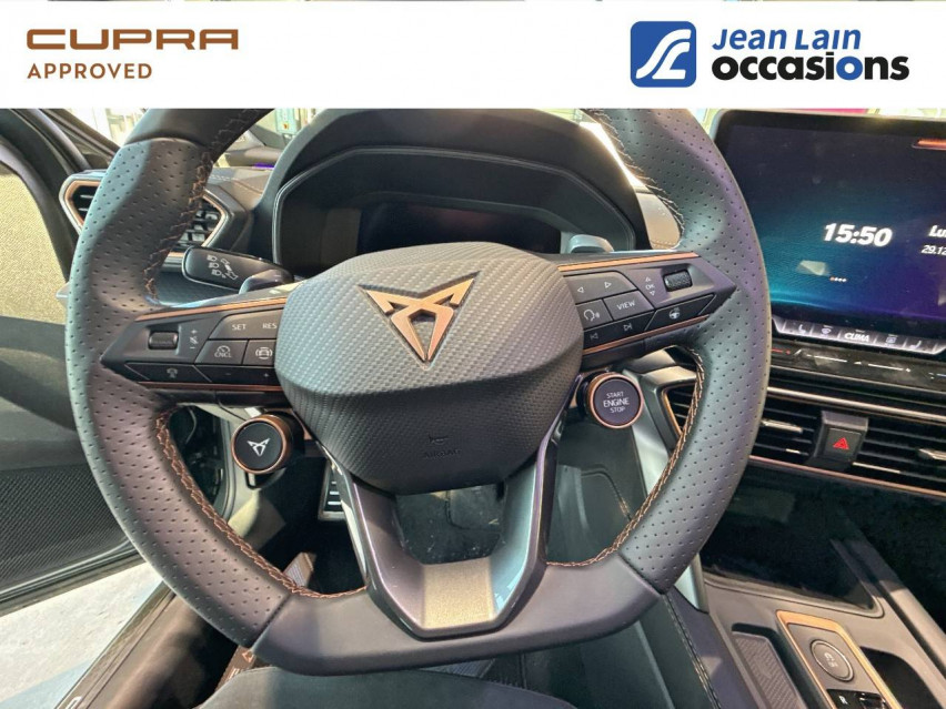 - Pack Intelligent Drive Full - TopView Camera 360° - Intelligent Park Assist : système d'aide active au stationnement - NaviSystem+ : système de navigation Europe 3D - Pre-Crash : système de prévision des collisions - Side Assist, Exit Assist et Exit Warning - Travel Assist et Lane Assist Plus - CUPRA Connect Plus 3 ans