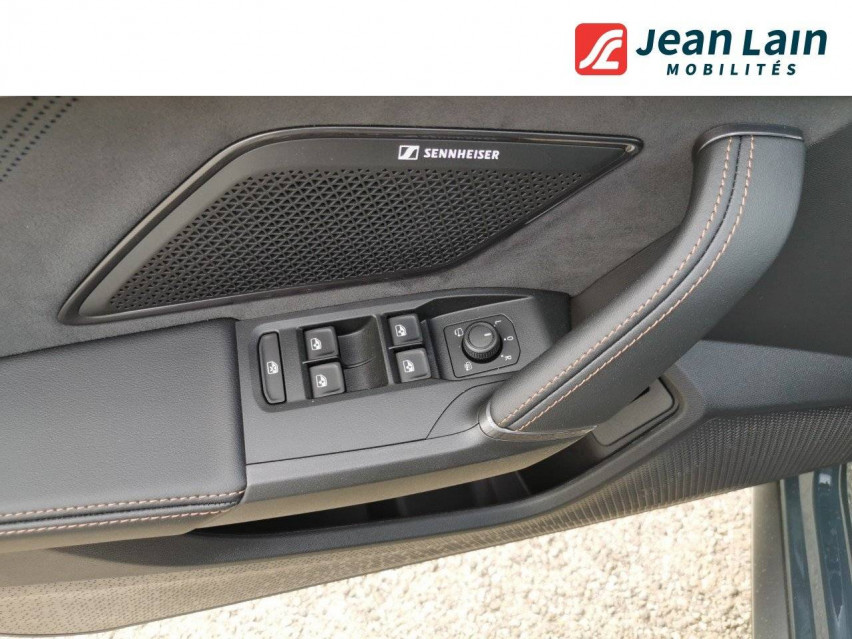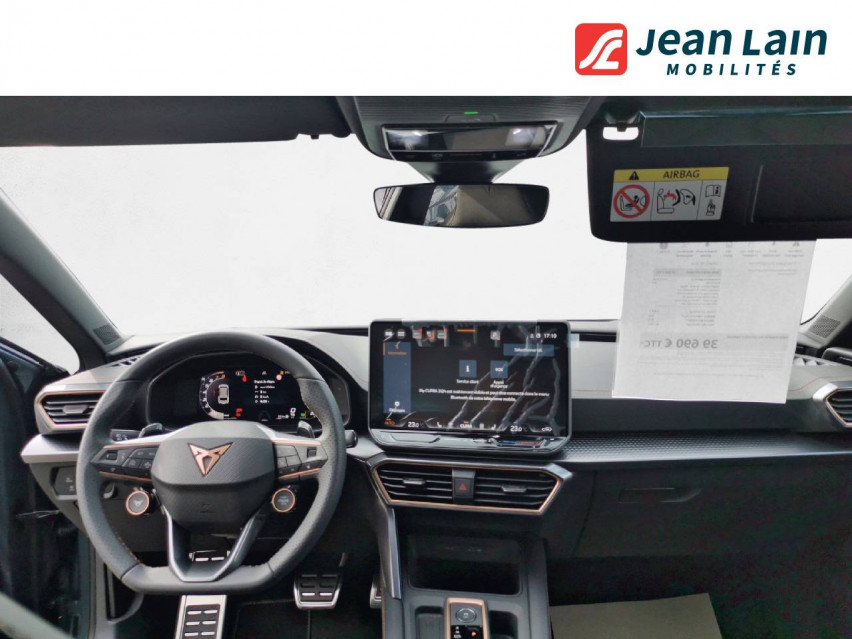 - Design intérieur Dynamic - Sièges baquets suédine Noir Asphalte avec poinçonnage et surpiqûres cuivrées - Logos CUPRA estampés sur les appuie-têtes - Planche de bord noire texturée avec inserts Dark Alu - Contre-portes suédine noire avec poinçonnage cuivré - Conducteur : siège électrique, dont réglage lombaire, à mémoire - Passager : réglage manuel de la hauteur et lombaire - Conducteur + passager chauffants