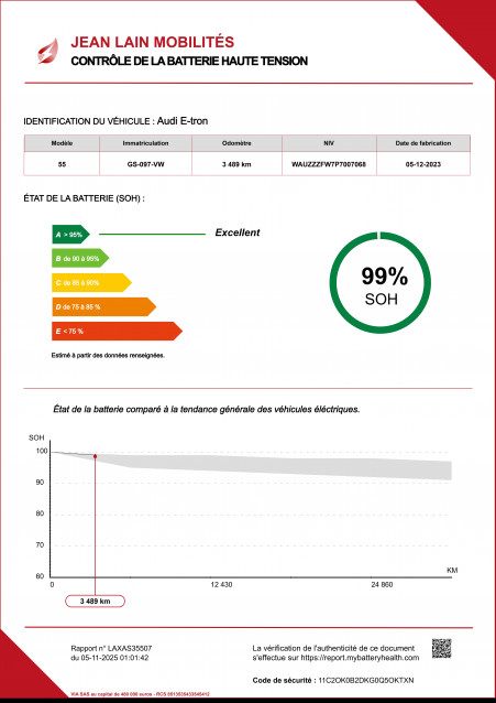 - État de la batterie : Score d'intégrité 99 %