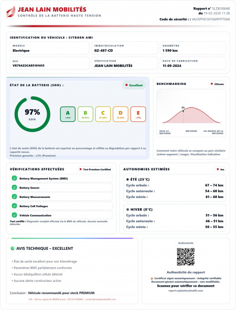 - État de la batterie : Score d'intégrité 97 %