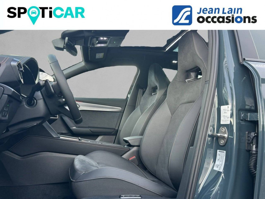 - Design intérieur Dynamic - Sièges baquets suédine Noir Asphalte avec poinçonnage Bleu Astral et surpiqûres cuivrées - Logos CUPRA estampés sur les appuie-têtes - Planche de bord noire surpiquée avec inserts Dark Alu - Contre-portes suédine noire avec poinçonnage Bleu Astral - Siège conducteur : chauffant avec réglage électrique à mémoire, y compris réglage lombaire - Siège passager : chauffant avec réglage manuel de la hauteur