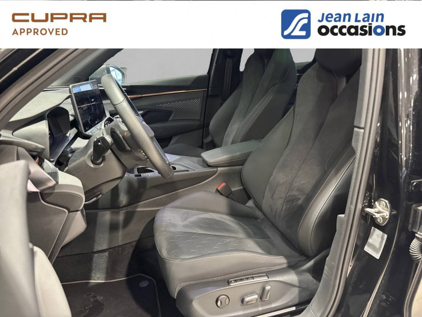 - Design Intérieur Moon Light (sièges baquets suédine + TEP Noir Asphalte surpiqûres cuivrées) - Logos CUPRA estampés sur les appuie-têtes - Planche de bord noir texturée avec aérateurs cuivrés - Contre-portes TEP noir texturé - Ciel de pavillon noir - Siège conducteur : chauffant avec réglage électrique à mémoire, y compris réglage lombaire - Siège passager : chauffant avec réglage électrique, y compris lombaire