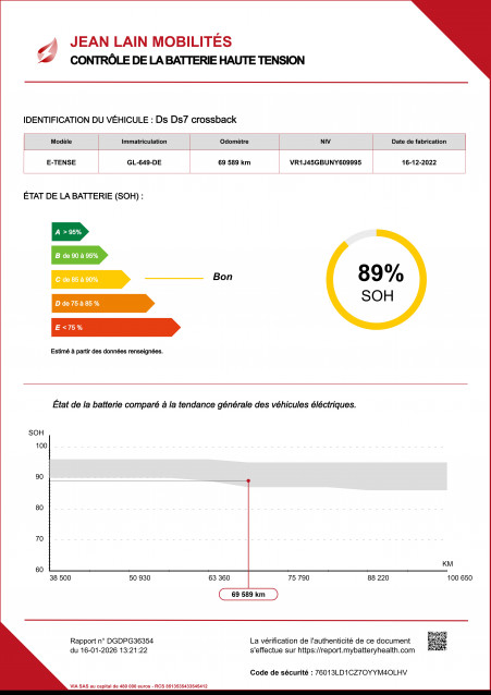 - État de la batterie : Score d'intégrité 89 %