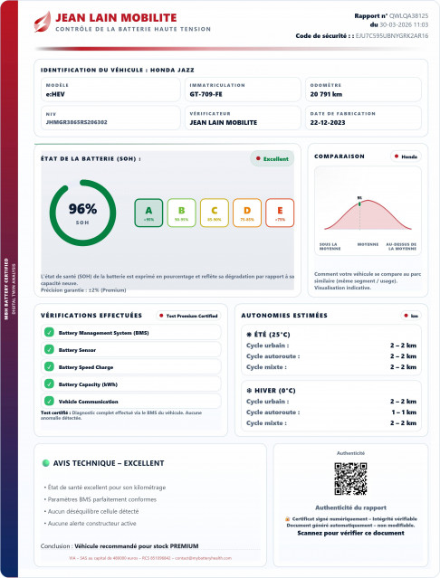 - État de la batterie : Score d'intégrité 96 %