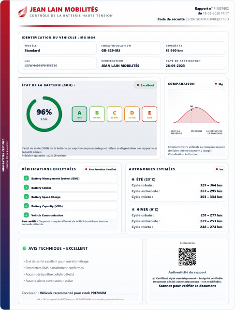 - État de la batterie : Score d'intégrité 96 %