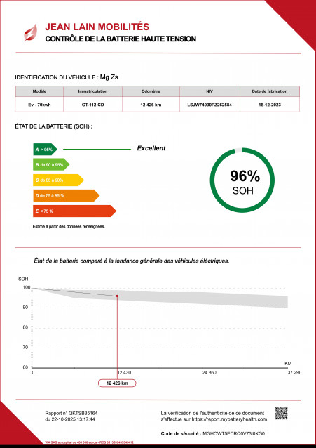 - État de la batterie : Score d'intégrité 96 %