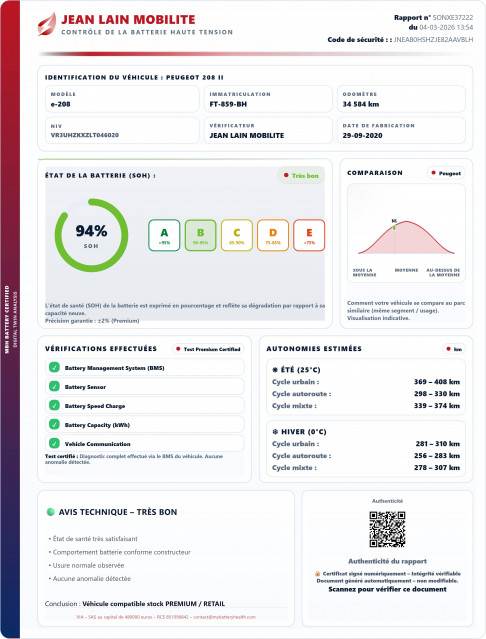 - État de la batterie : Score d'intégrité 94 %