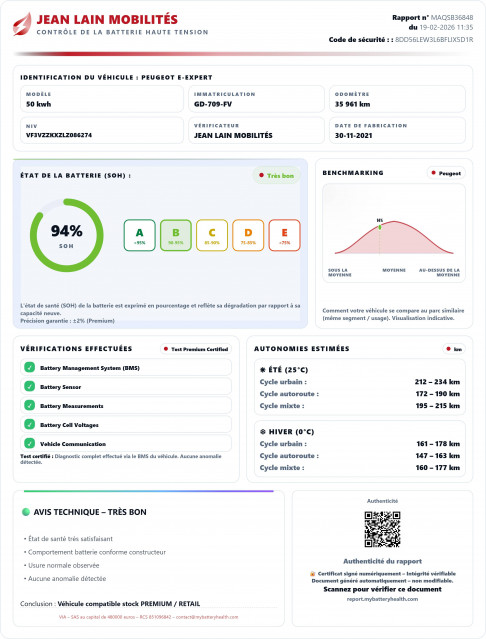 - État de la batterie : Score d'intégrité 94 %