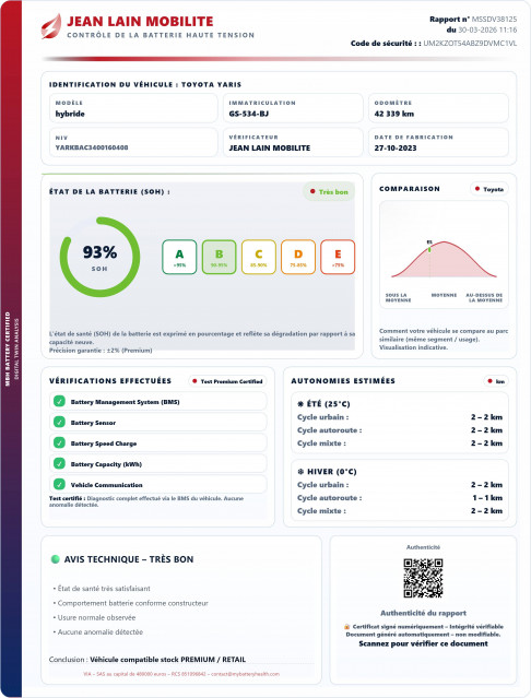- État de la batterie : Score d'intégrité 93 %