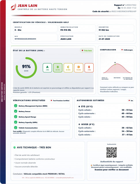 - État de la batterie : Score d'intégrité 91 %