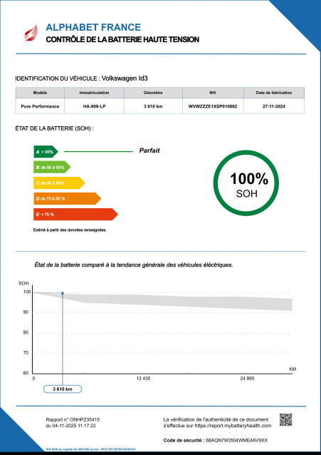 - État de la batterie : Score d'intégrité 100 %