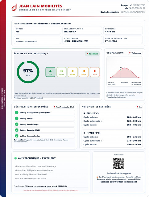 - État de la batterie : Score d'intégrité 97 %